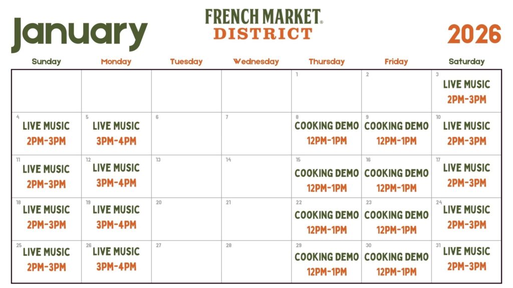 MARKET MORSELS is a presentation by the French Market District that combines live storytelling with a cooking demonstration, noon -1pm! See, hear, smell, and taste this performance hosted by the Gumbo Queen of New Orleans. Guests are invited to sample delicious local delicacies and regional favorites in the historic Farmer’s Market. FREE and open to […]